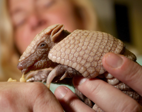 In case you thought all baby animals were cute, here is a 4-week-old southern three banded armadillo eating a banana off a zookeeper’s hand: