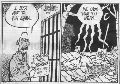 Another coincidence of timing: Vick makes two closed-door appearances for HSUS which are taped for a 60 Minutes story this Sunday and he gets signed to the Eagles on Thursday night.