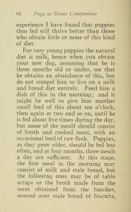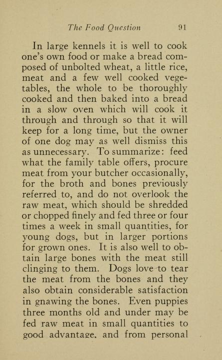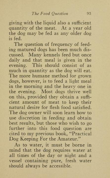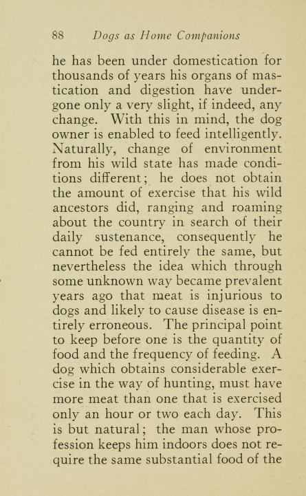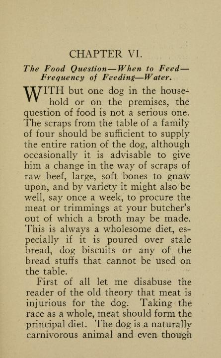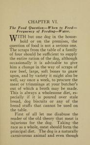 Thanks to reader Pai and to the Library of Congress, I offer the following chapter on feeding from the book Dogs as Home Companions by A.F. Hochwalt, published in 1922. I love this kind of thing, prolly abnormally so. Expect to see more excerpts from old dog books in future. Thank you Pai!