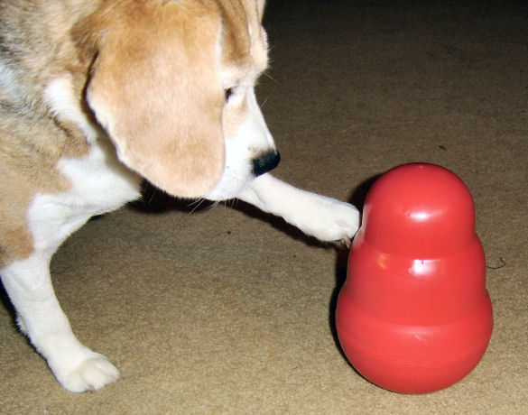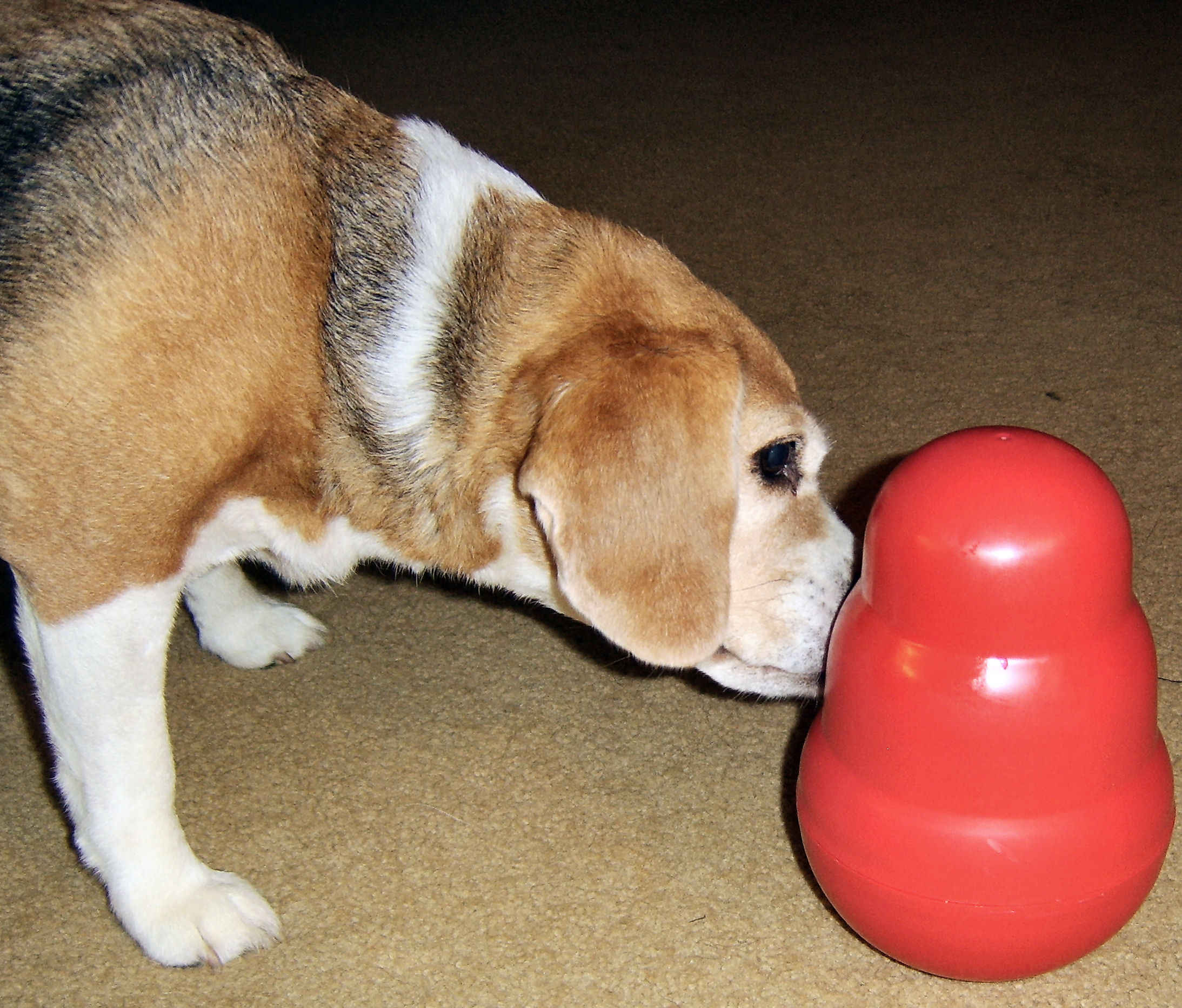 When I was asked if I would be interested in receiving a Kong Wobbler to review, I was skeptical for a couple of reasons. First, my dogs have never really been into Kongs – even when I stuff them with treats. They dump the treats out immediately, scarf them up, and it’s all done for the toy. Second, since I’ve never reviewed a product before – official like – I wondered, “What if my dogs don’t like this version of the Kong or if for some reason, I don’t like it?” In asking that very question I was told to just give an honest opinion. So I figured I’d give it a whirl.