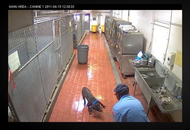 In this next series of shots, it looks as if dogs are being taken to the kill room at varying intervals – the longest period of time being 9 minutes and the shortest (the last few shots) are just 2 minutes apart each.