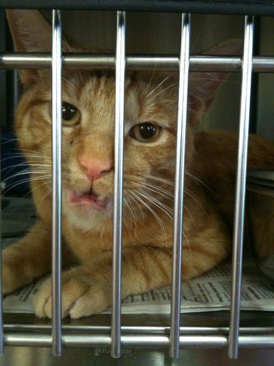 One of our volunteers took this picture on the fly when we were at the shelter last Friday picking up several other “death row” cats. Yes, we usually strive for better pictures, but since this cat had only about 24 hours left (per what the shelter representative said on the phone) we decided to post it as is.
