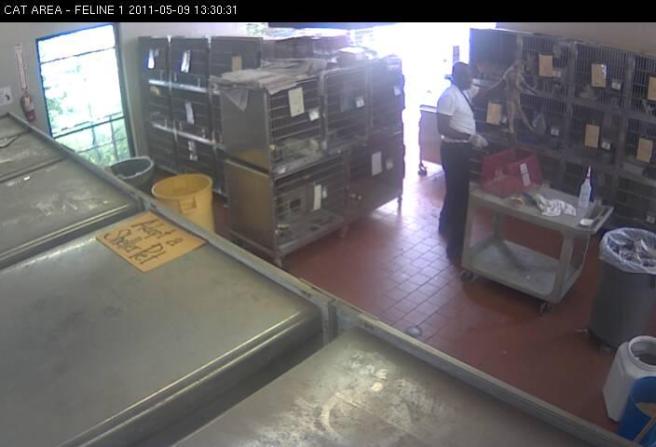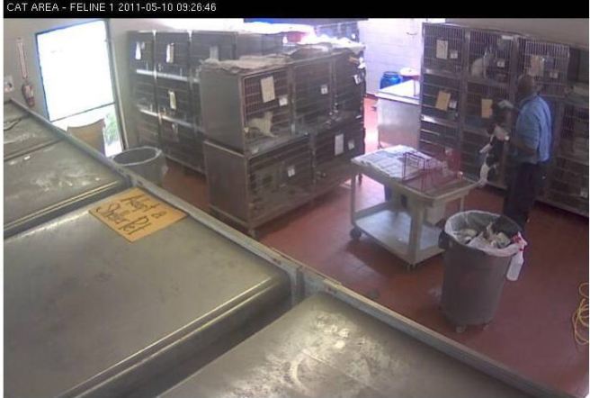 Meows & BowWows Animal Rescue took in some of the cats pictured on the screenshots today. We were able to find foster homes for some, and another one is being boarded at our vet’s office and treated for upper respiratory infection. We got the two Siamese mixes posted on Yesbiscuit earlier. We also took in the black and white cat from one of the “scruff-and-dangle” shots and we got the white-looking cat that you can see sitting in the cage on several of the screenshots. She is the one who is sick and was scheduled for euthanazia if not taken by rescue by the end of today.