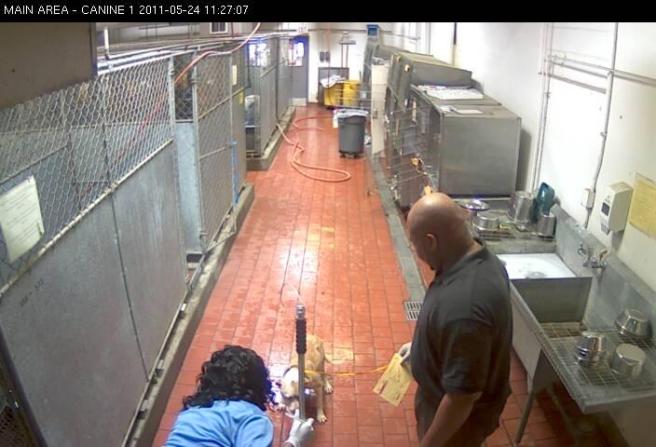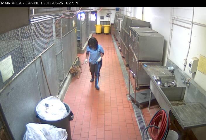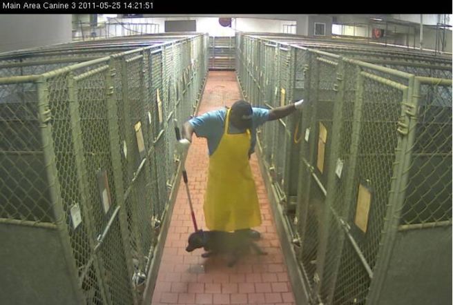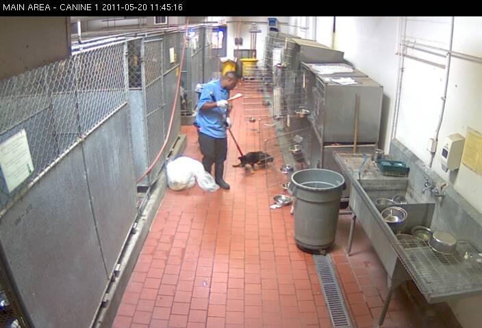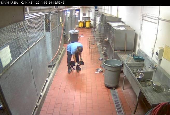 10. Okay, photo #12. Dragging a dog…holding a puppy? Looks like a cat to me. Can anyone make it out. That is against policy (lol, I know) to take dogs and cats into the into the kill room at the same time.
