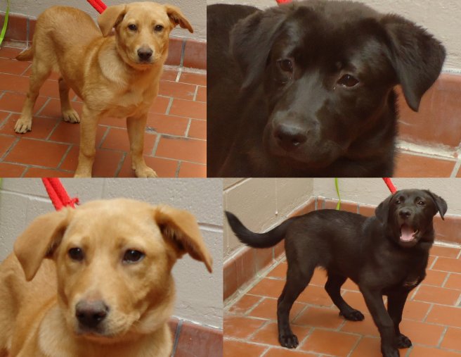 They are litter mates.  They were owner-surrenders, together, and I think in mid-April.  The last week of April they started coughing-Marley, the brown one more than Joy, the black one.  I volunteer at MAS and offered to foster up to 2 dogs if all the dogs with URI symptoms could not be adopted.  I went and got these two I think on the 28th.  We did a second worming at my vet, and got them on antibiotics.  They stayed with me at my house, separated from my own dogs, for 2 weeks, and their symptoms cleared up completely.  They are ready to be sterilized and adopted.  They look to be mostly lab.  They were completely house-trained by the time they were well-they never had an accident in the house.  They sleep through the night, they are loving, sweet, fun dogs.  Marley is much more timid than Joy, and would love to find a home together, but two loving homes would be fine, too.  Their shelter numbers are 224882 and 224883.  If there is a lab rescue, or someone who just wants two wonderful female pups, they are ideal.  They will be sterilized, immunized, and micro-chipped before they go home.  I’d love to see them placed-they have been there a month or more.