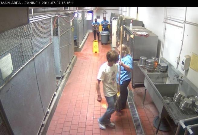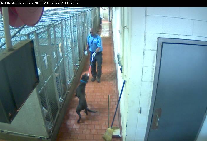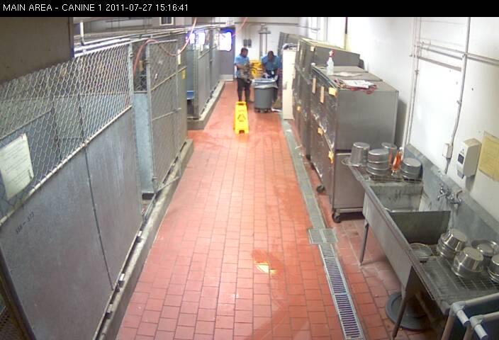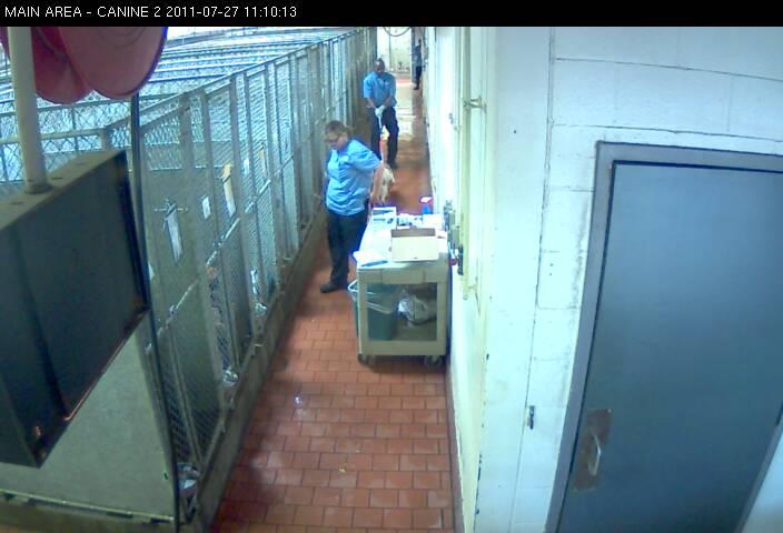 4. I’ve been watching Main Area.. Canine 2 a guy was washing down the run area.. is he soaking down the white and brown dog in the first kennel? And how do I post the photos I have saved?