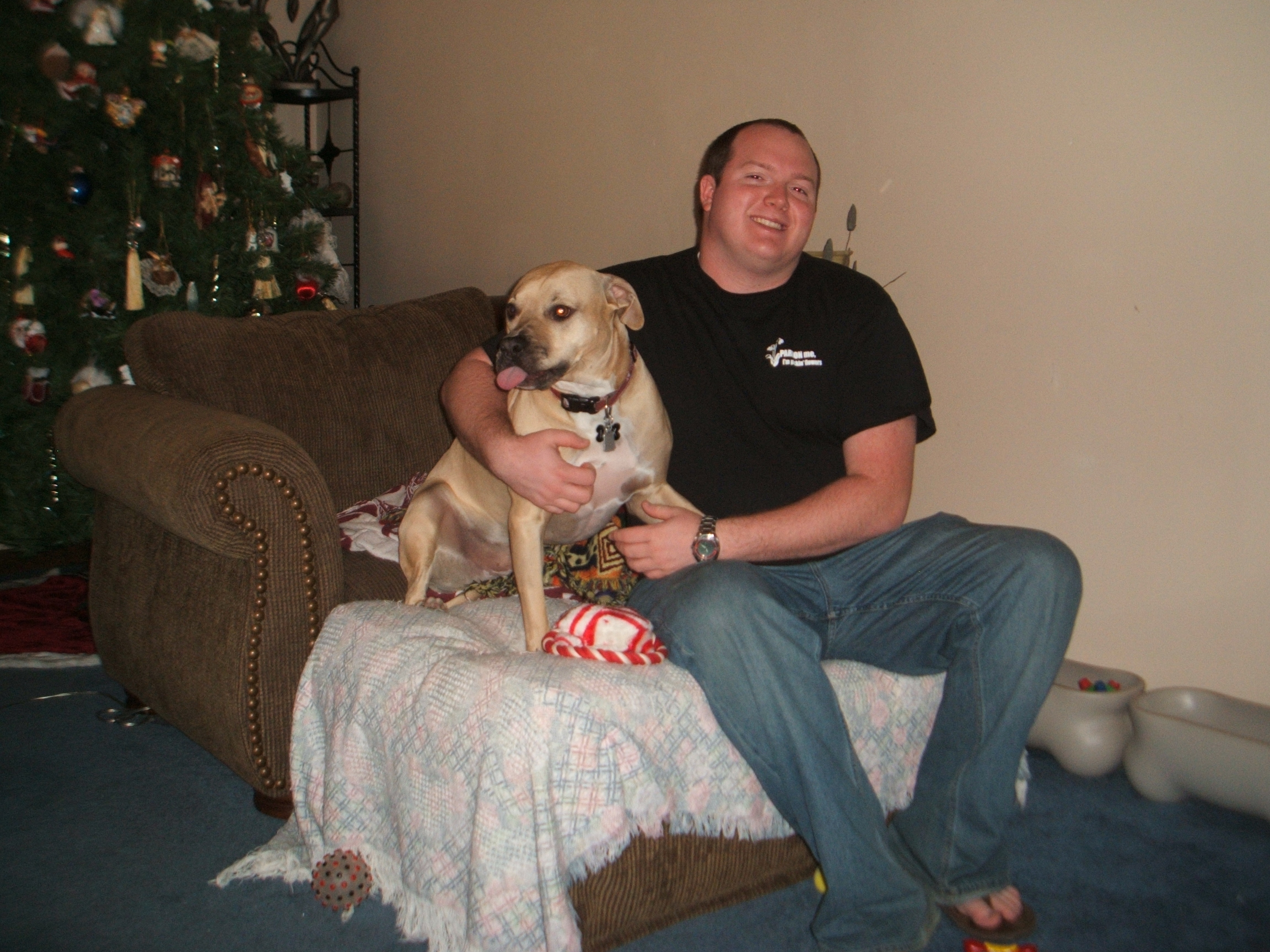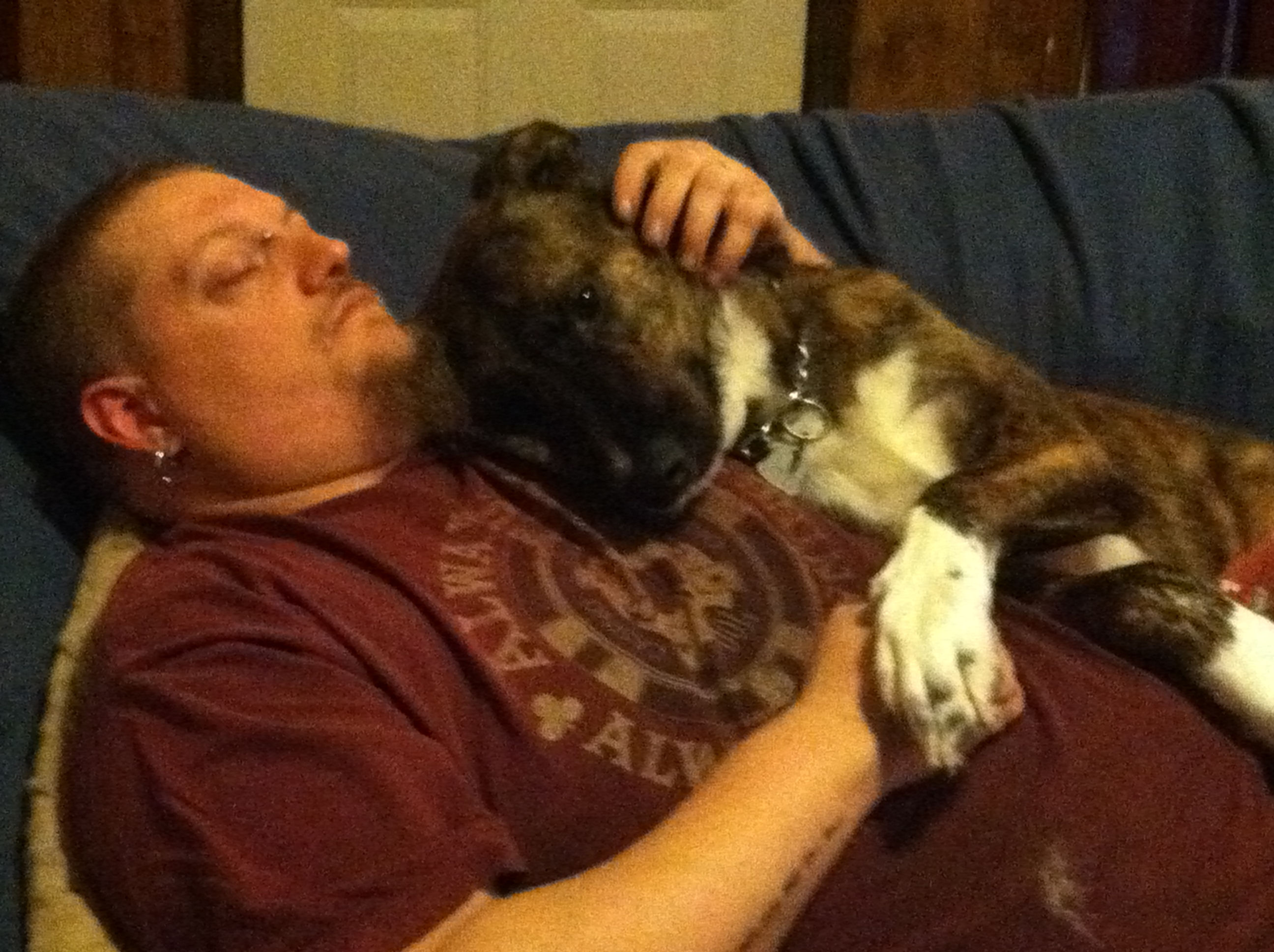 Here's a doctored picture of Sam and Zachary. - Tammy S.Bobbie & the Silverwalk Hounds sharing houndsongMy husband blowing bubbles with our Bernese Mountain Dog, Petra. - SarahGirl with her beloved Rosie, a Chow mix adopted from MAS in August of 2002. - ClaireLost Pitbull loves Sue in Malden, MO.Foster puppy and Dot Kirby, NC. "Freeway" now lives in VA.Anne and Yvie (the best adopted dog EVAR) at the Walk for Animals in MN.Kelly and DeSoto Animal Rescue "Ms. Lola Devine"Philip and Hearts of Gold Pit Rescue "Maximus"Here are my sweet babies - both were strays that found me. Blondie is standing and Nicky is on the bench beside his Momma. They were the loves of my life and I was so blessed to have them. - GwenHere is a photo of me participating in the Valley Funale, a dog sled race here in Two Rivers, Alaska. Four of these dogs were available for adoption at the time the photo was taken. - LynnWillow & her "daddy" having together time when he gets off of work. - NicciThis is a recent picture of me (Angie Huser) and my two dogs, Kayla (black dog) and Orlando. My husband kindly took the photo. Orlando was recently certified a therapy dog a day before in that picture, and Kayla already is a therapy dog. We all reside in Noblesville, Indiana.Brenda & Noah with Cleco & Chesley on Cadillac Mountain in ME.Me and Nori the kittie, watching TV together on a winter day in Corvallis, Oregon. - SuzanneThe picture is of my Granddog Lady and my new son-in-law Tony McEntegart. - Tammy G.