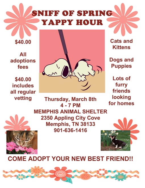 In fact, the response from city leaders has been underwhelming.  The mayor has not called a press conference to even threaten prosecution for documented acts of animal cruelty by city employees.  Neither he nor the other city leaders in charge of MAS have so much as issued a statement, a cross look or a sneeze.  The abuse at MAS stands, as it always has.  But the city did manage to send out a flyer promoting a “Yappy Hour” adoption special at MAS.  Normally, I am all kinds of supportive about shelters promoting adoptions and offering discounts but seriously – this is the city’s response?  They’ve got employees abusing pets at the pound and they send out a cutesy flyer with Snoopy on it, offering a limited-time discount to adopters?  I guess the thing I had in mind involved more handcuffs and police cars, less cartoon characters.  But if this is what Memphis is going with, I think the flyer should at least be corrected to reflect how Snoopy would be treated if he ever actually did end up at MAS.  And so, thanks to an anonymous graphic designer who loves pets and hates pet abuse, I offer the corrected version of what the city should be sending out about this event: