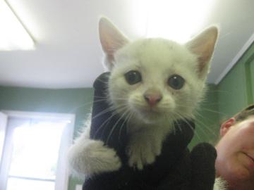 That little month old female white kitten, very inquisitive and will learn quickly I can see right off…