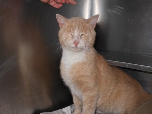 Peaches was cat #21045 at CAA, impounded on February 9, 2012 after being trapped. The impounding officer wrote “very sweet cat” in the record. Sally sent me this photo of Peaches getting some love on February 14: