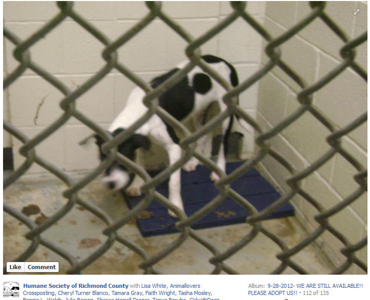 There is currently some online drama surrounding the Humane Society of Richmond Co in NC.  The basic issue appears to involve money and has the board threatening to terminate its animal control contract with the county.  E-mails and Facebook postings are circulating stating basically that 250 pets at the HSRC have until October 31 to get adopted before the evil county takes over and starts killing animals.  But as Fix NC points out, the HSRC is already killing animals – more than 70% of those who came through the door in 2011.  Could the county possibly be worse?