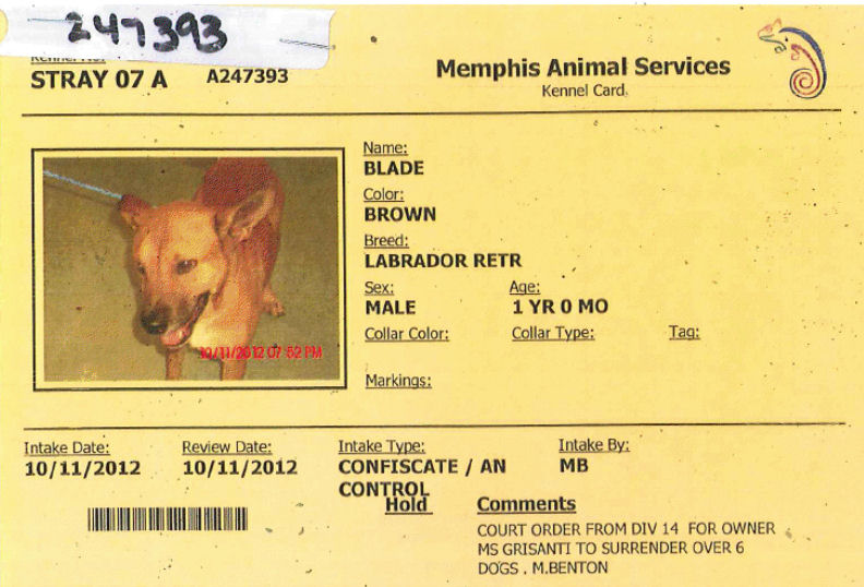 MAS killed all 6 dogs on October 12, 2012. They were never offered for adoption to my knowledge and no pleas were issued to the public or to rescue groups or fosters. Is this what the judge had in mind when the order to surrender dogs was issued to the rescuer? Does this represent an improvement in the quality of life for these dogs? Is this the best the city of Memphis can manage when called upon to help 6 pets in their $7.2 million facility?