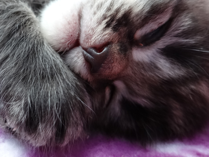 Sleeping kitten, safe at the Randolph Co Humane Society in WV. (Photo provided by Vicki Aucremanne.)