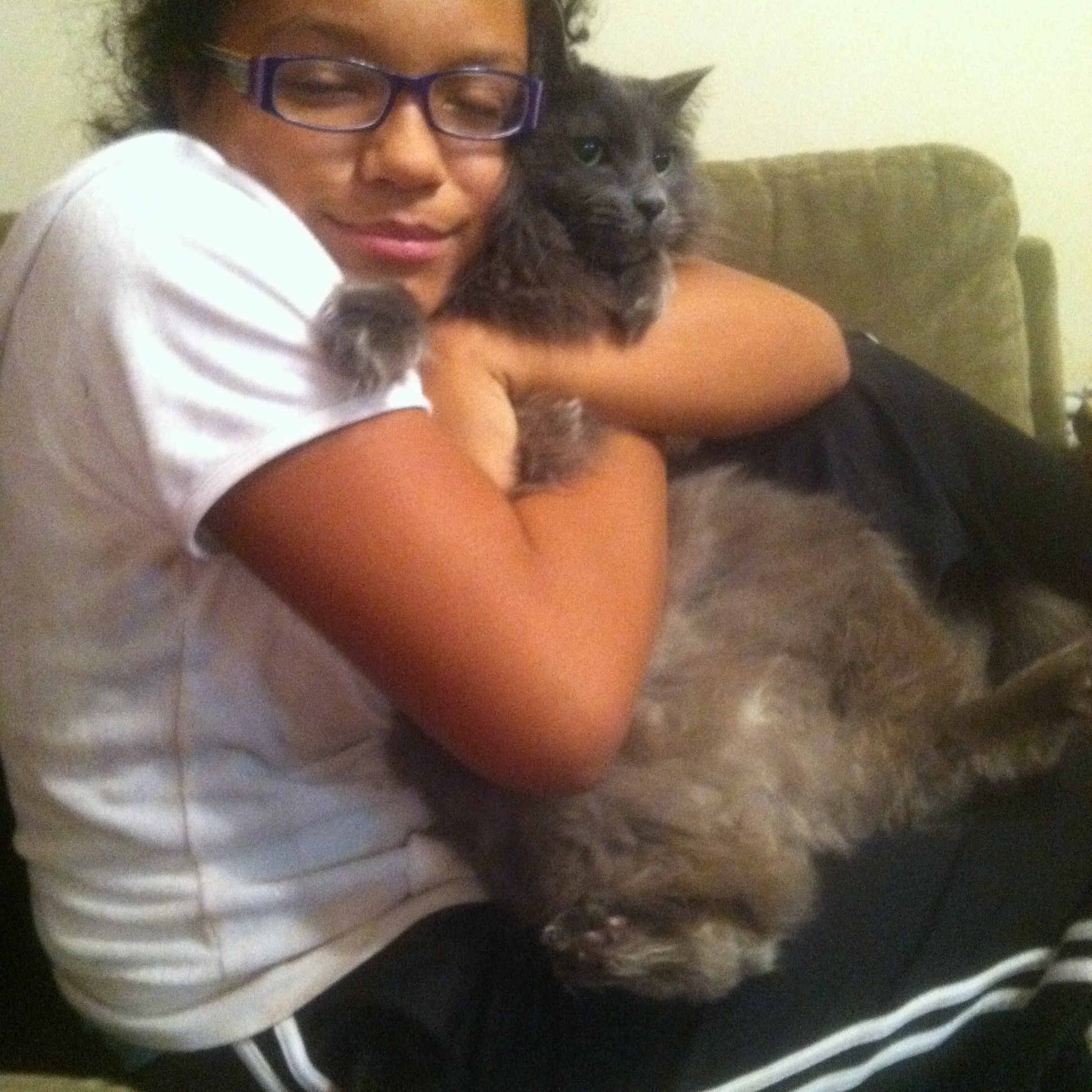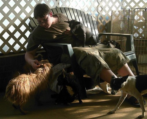 Submitted by Debbie: “Debbie and rescue dog, Zoe (smiling), in Springfield, MO”Submitted by Michele: “This is my cat Gordy sleeping in my lap. Gordy is deaf so he sleeps very soundly.”Submitted by Brandi: “My husband Kelly and my retired American racing dog Sophie sleeping in bed.”Submitted by Luanne: “Little Buttercup was a sweet little rehab squirrel who was released back to where she belongs.”Submitted by Luanne: “Chris Belew, my son, and the neighbor’s new puppy resting on our porch after playing.”Submitted by Jan: “MY MOM, ANNIE LOU DENNING, LOVER OF KIDS, DOGS, FRIENDS, HUMOR, CLOTHES AND SHOES. NOT NECESSARILY IN THAT ORDER!! MEREDITH COLLEGE, 1942”Submitted by Jan: “VICTOR AND ‘MUGSY’ – TWO GUYS JUST CHILLIN’ IN PACIFICA, CA”Submitted by Jan: “Dan and his rescue dog “Hula” – Napa, CA”Submitted by Kim: “Jess and Mr. Wellington”Submitted by Martha: “This is 5 year old Molly with her Pug, Louie. Louie came to us from an Ohio puppy mill. He had a difficult and sad life but now lives a very happy life in Massachusetts.”Submitted by a reader: “Paco was rescued march 2011 from a puppy mill.”Submitted by Niki: “My Son Is going to go to college next year, to study political science, and veterinary. Hoping to one day make a bigger mark on saving more animals.”Submitted by Gudrun: “This is Emily in Georgia with our rescue cat Mini Miez (German for kitty).”Submitted by Tonya: “This is the lady that adopted Shadow from PAWS. The dog with the urinary disease that wasnt treated. This is Kathleen and Shadow.”Submitted by Aubrie: “Rich and Aspy taking in 18 holes in Alabama (and chasing a few squirrels….)”Submitted by Callie: “Callie sitting with Heidi (German shepherd), Chica (chihuahua), and Tip (pit mix) in Terrytown, LA”Submitted by Dot: “My Friend Cheri comforting Progie right after her knee surgery. Yanceyville, NC. Photo by Dot Kirby”Submitted by Dot: “My friend Cheri comforting “Celie” at the vets right after knee surgery, Yanceyville, NC”Submitted by Jamie: “Lex and my husband the summer before she left us.”Submitted by Ashley: “Ashley and her rescued American Pit Bull Terrier Athena in Portland, OR”Submitted by Karen: “Banana will ride on your shoulder . . .”Submitted by Karen: “And Smoochy will hold your hand . . .”Submitted by Karen: “But Dorian is Not Impressed.”Submitted by TN Death Row Dogs: “Amber at home in Ft. Campbell, KY”Submitted by Claire: “My grandson, Julian, and my sorta-lab, Swoopes. Swoopes was rescued from MAS in August of 2002.”Submitted by Lisa: “This is me with my foster half-Boston Jujube.”Submitted by Ona: “Chef – Katrina Rescue – Memphis, Tennessee. Chef visiting my son’s school.”Submitted by Vania: “A man helping his dog surf at the 3rd annual dog surfing competition in Imerial Beach, CA in 2008.”Submitted by Vania: “Small child with formerly feral foster kitten Tortie in AZ”Submitted by Jamie: “One last photo for you – the “family” photo we used for our Christmas card this year. The brindle boy is Gonzo – the one we found in the culvert two months ago. He’s about 6 months old. The other is Lollie, our first child. She’s two. Happy Holidays to you and your family, Shirley! Thanks for all you do!”