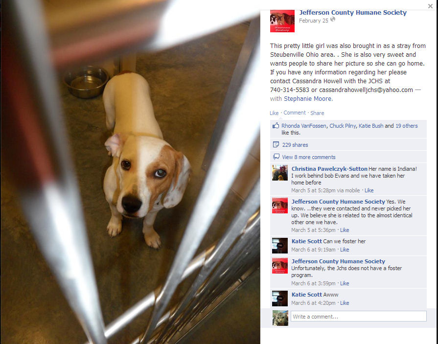 People and groups that are potential witnesses and can provide information are encouraged to leave a private message at the group’s Facebook page, Friends of Jefferson County Ohio Sheltered Animals ( https://www.facebook.com/pages/Friends-of-Jefferson-County-Ohio-sheltered-animals/145495868948786?ref=hl ). Information gathered will be hand delivered to county officials.