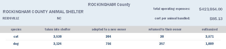 Portion of the state of NC 2012 shelter report showing Rockingham County