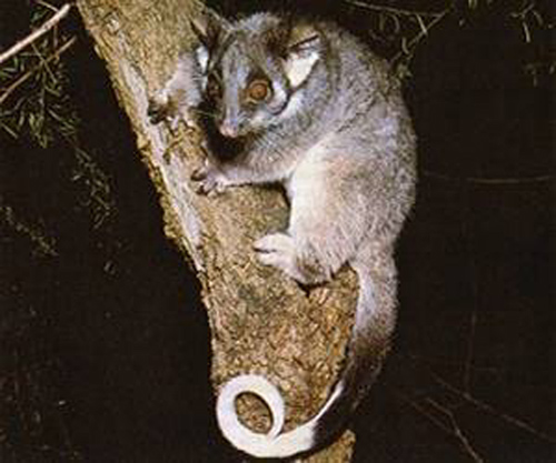 All good guesses. This is a ringtailed possum. I chose this animal because I did not know that possums could look like this. I am used to this variety: