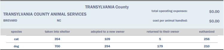 Portion of the state of NC’s 2014 shelter report showing a 44% kill rate at Transylvania Co.