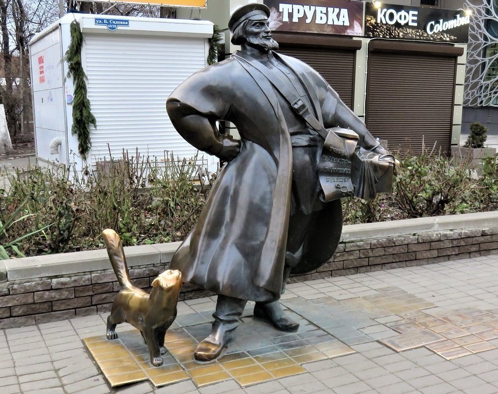 I especially like, “A statue of a merchant and cat in Rostov-on-Don, Russia by Dmitry Lyndin, 2006.”