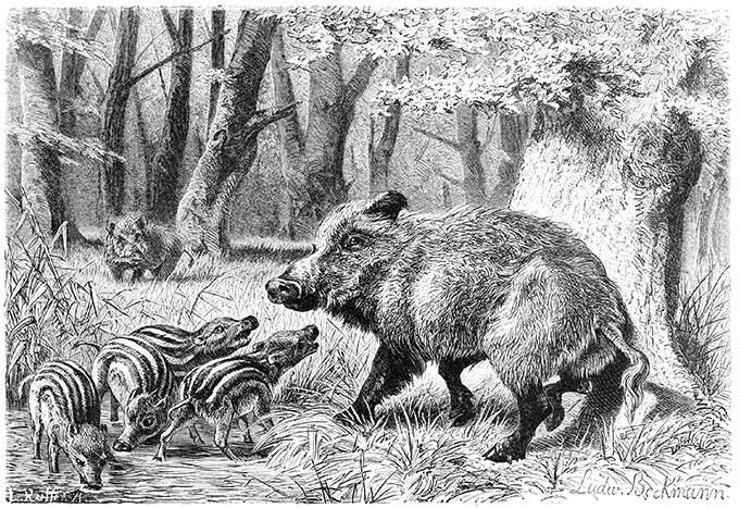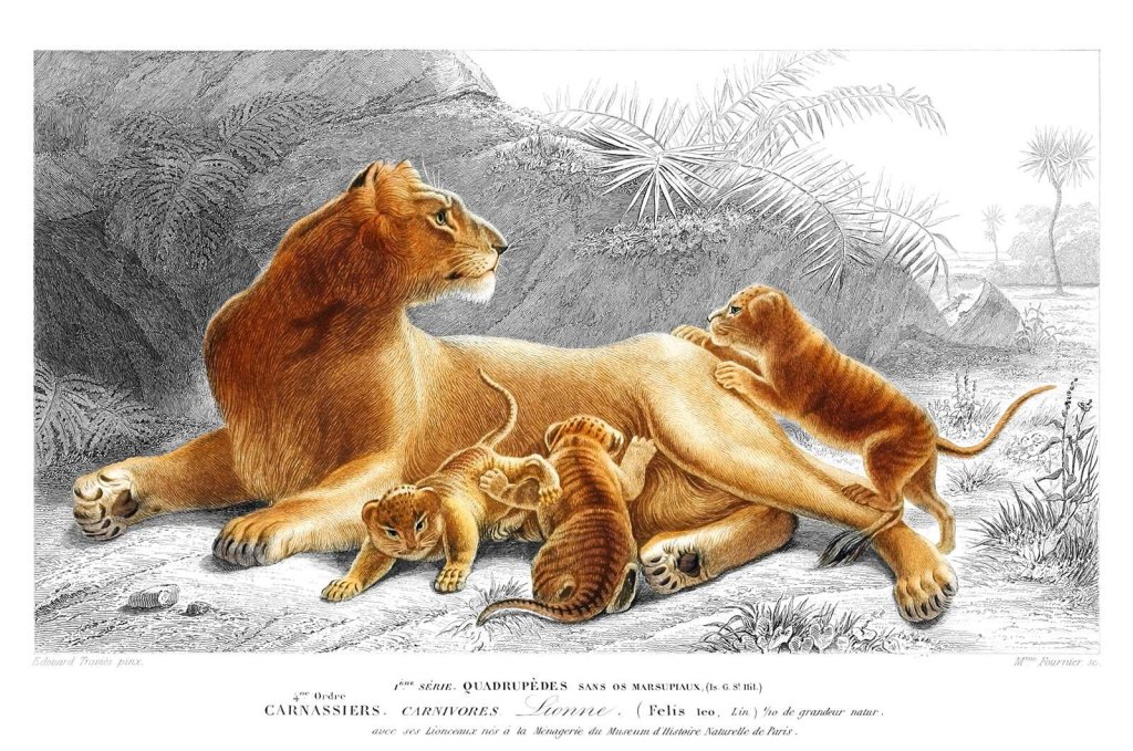Summer Day with a Sow and her Piglets by Carl Henrik Bøgh, 1875“A Samotherium mother warns an approaching Megalochoerus in Late Miocene Turkey, 7 million years ago.” – Dhruv Franklin, artistWild boar illustration by Ludwig Beckmann from the book Brehms Tierleben, Vol. 3 by Alfred Edmund Brehm, 1900Linnaeus’s mouse opossum (Marmosa murina) by Édouard Traviès from the Dictionnaire universel d’histoire naturelle, atlas, vol. 1 by Charles Henry Dessalines d’Orbigny, 1849Lioness by Édouard Traviès from the Dictionnaire universel d’histoire naturelle, atlas, vol. 1 by Charles Henry Dessalines d’Orbigny, 1849Illustration by Charles Herrmann-Léon from the book Domesticated Animals, their Relation to Man and to his Advancement in Civilization by Nathaniel Southgate Shaler, 1895Woodcut from the book List of the Vertebrated Animals Now or Lately Living in the Gardens of the Zoological Society of London by the Zoological Society of London, 1896Rabbits in the Rain by John Lechner, 2021From the book Strange Dwellings by JG Wood with illustrations by WF Keyl, JB Zwecker and E Smith, 1903Foster moms from The Book of the Animal Kingdom by William Percival Westell, 1910From the book The Royal Natural History, Volume 2 by Richard Lydekker, 1893From the book The Royal Natural History, Volume 4 by Richard Lydekker, 1893