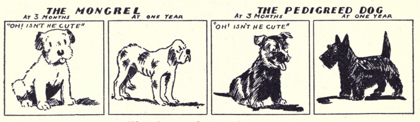 You certainly have a wonderful collection of vintage animal books. About the image for “Laws about Animals” above — it is very moving & leads one to make up a story about the case. The man has clearly gotten in legal trouble connected with his dog — or is the dog simply comforting him? It would be interesting to find out what your other readers think is the story behind the image I think maybe the dog has been deemed dangerous & condemned & the man has been pleading for him. Or maybe he isn’t allowed to keep him where he is living. It certainly stimulates the imagination.