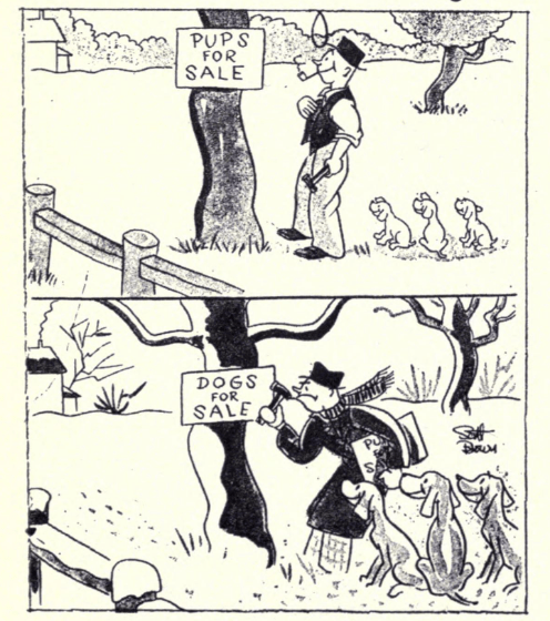 In the mid-1940s, Captain Will Judy published a Handy Dog Booklet Series which included a dozen different titles. Each was illustrated and I’ve chosen some images to share from several of the booklets.