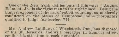August Belmont Jr was an extremely wealthy fox terrier breeder, president of the AKC and numerous other Things Rich Guys Do for Fun. He was reportedly a participant in the “sporting” events described below.