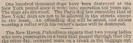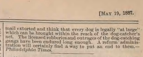 For further reading, take a look at how cities responded to an 1888 query about laws and protocols regarding stray dogs.