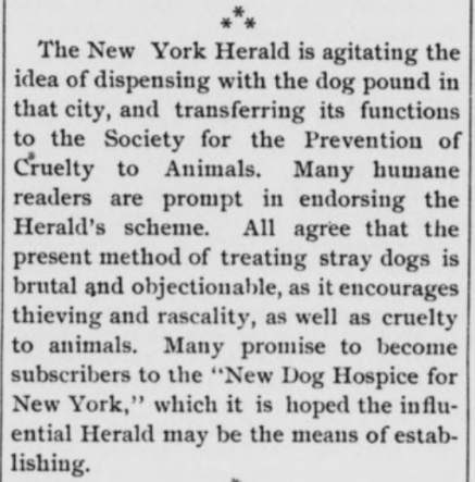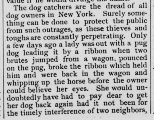 I was aware of the brutal, broad daylight theft of dogs by dog thieves paid by the city pound, which led to the ASPCA getting the contract.