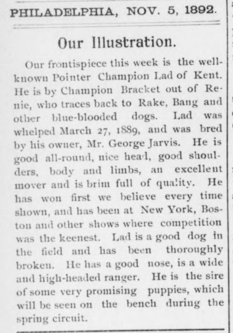 Illustration by G. Muss Arnolt on the cover of The Fanciers’ Journal, November 5, 1892From the cover of The Fanciers’ Journal, January 18, 1890From the cover of The Fanciers’ Journal, November 30, 1889From the cover of The Fanciers’ Journal, November 16, 1889From the cover of The Fanciers’ Journal, May 13, 1893