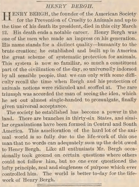 The following is snipped from Our Dumb Animals, the publication of The Massachusetts Society for the Prevention of Cruelty to Animals, April 1888:
