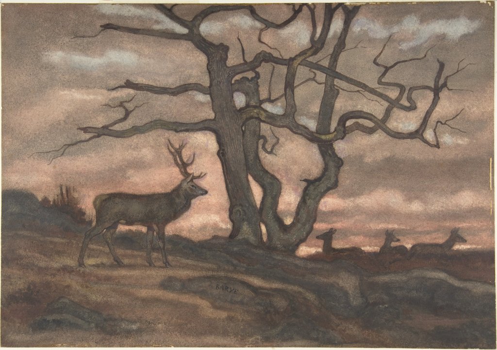 Deer and Tree Against Sunset by Antoine-Louis Barye, 1810 – 1875