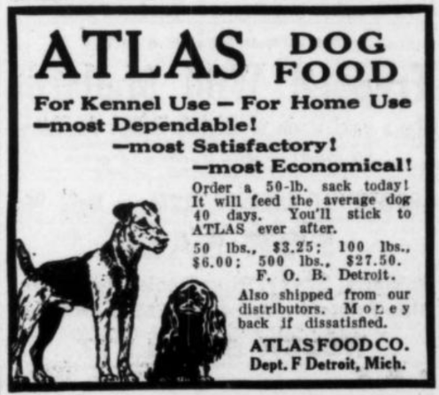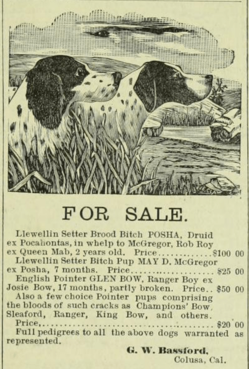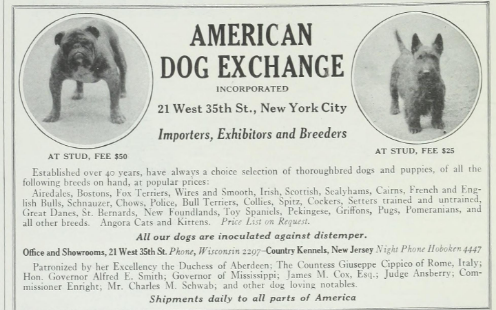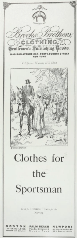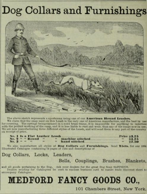 Field and Stream, October 1923Two from Field and Stream, August 1922Forest and Stream, August 7, 1879Two from The Dog Fancier, December 1921Breeder and Sportsman, January 1884Breeder and Sportsman, April 5, 1884Close-up from ad above appearing in Country Life, May 1928Country Life, May 1928
