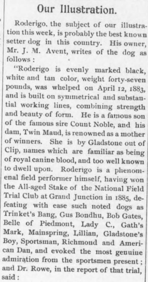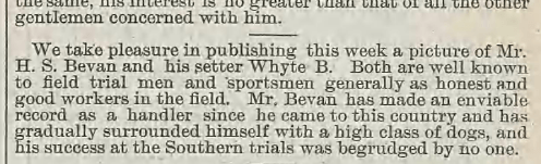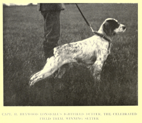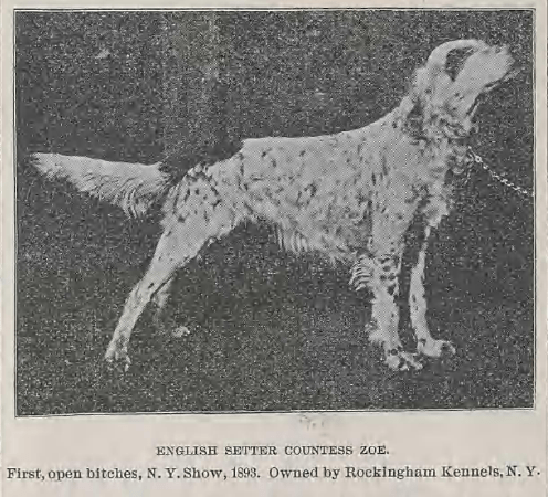 From the cover of The Fanciers’ Journal, August 16, 1890From the cover of The Fanciers’ Journal, September 13, 1890The Fanciers’ Journal, October 4, 1890Forest and Stream, March 2, 1893Forest and Stream, March 9, 1893Forest and Stream, March 23, 1893Forest and Stream, March 30, 1893Forest and Stream, April 20, 1893Forest and Stream, April 27, 1893From the book Dogs (Melbourne’s Sporting Library) G.A. Melbourne, editor, 1907From the book The Complete English Wing Shot by G.T. Teasdale-Buckell, 1907From Dog Owners Guide by Kasco Mills, Inc, 1950