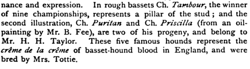 And lastly, while this snippet doesn’t specify whether the bassets are rough or smooth coat, it deserves inclusion for the masterfully told anecdote: