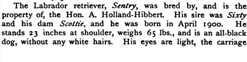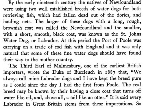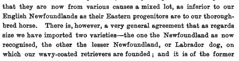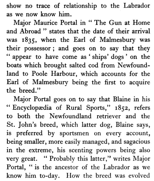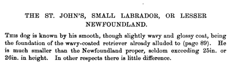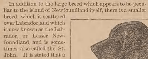 From the book Histoire Physiologique et Anecdotique des Chiens de Toutes les Races by Bénédict-Henry Révoil, 1867Brief entry in the book The Dogs of the British Islands by Stonehenge, 1872From the article “The Newfoundland Dog” appearing in the August 7, 1879 issue of Forest and StreamFrom the book British dogs their varieties, history, characteristics, breeding, management and exhibition by Hugh Dalziel, 1879From the book The Twentieth Century Dog (Sporting) by Herbert Compton, 1904An early Labrador from the book The Complete English Wing Shot by G.T. Teasdale-Buckell, 1907Labradors in 1901 pictured in the book The Complete English Wing Shot by G.T. Teasdale-Buckell, 1907From the book The History of Retrievers by Charles C. Eley, 1921From the book Sport is Where You Find It by Philip K.Crowe; illustrated by Paul Brown, 1953