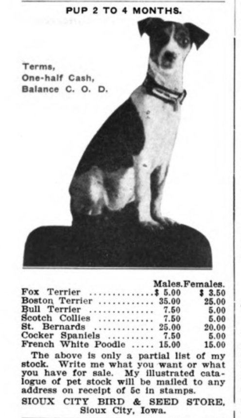 A Griffon Bruxellois from the book Toy Dogs by Muriel Handley Spicer, 1902Wire and smooth fox terriers in The Dog Fancier, April 1907Irish setters on the cover of The Dog Fancier, May 1907Eight week old bloodhounds on the cover of The Dog Fancier, December 1907Collie and her two week old litter in The Dog Fancier, May 1908The Dog Fancier, May 19089 month old collie in The Dog Fancier, July 1908Collies in The Dog Fancier, August 1908Three month old beagles in The Dog Fancier, October 1908Country Life in America, February 1915St. Bernards in Country Life in America, April 1915Country Life in America, April 1915The Dog Fancier, August 1907