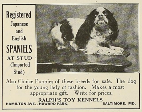 Country Life Illustrated, March 27, 1897A Maltese in the book: Huntington, H.W. (1901). The show dog. Providence, RI: Remington Printing CoSmith, A.C. (1910, October 29). The kennel club show. Country Life, pp. 597-599Smith, A.C. (1910, December 3). Ladies’ kennel association show. Country Life, pp. 789-791Smith, A.C. (1910, December 3). Ladies’ kennel association show. Country Life, pp. 789-791Dogdom, July 1911Dogdom, September 1911Dogdom, September 1911Dogdom, October 1911Photo by H.V. Furness of a Prince Charles spaniel from the article: Haynes, W. (December 1915). Toy dogs of royalty. House and Garden, pp. 36-37Photos by H.V. Furness of two chihuahuas from the article: Haynes, W. (December 1915). Toy dogs of royalty. House and Garden, pp. 36-37This June 1918 cover of House and Garden was illustrated by Charles Livingston Bull (1874–1932) and includes a cute Sealyham terrier.An ad in the book: James, G.B., Jr. (1894). The dog and how to breed, train and keep him. Boston, Massachusetts: Walnut Publishing CoTurf, Field and Farm, July 9, 1897An ad in the book: Huntington, H.W. (1901). The show dog. Providence, RI: Remington Printing CoDogdom, June 1911Dogdom, June 1911Dogdom, July 1911House and Garden, January 1917House and Garden, January 1917House and Garden, February 1917House and Garden, July 1917House and Garden, September 1917House and Garden, October 1917House and Garden, November 1917