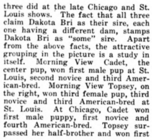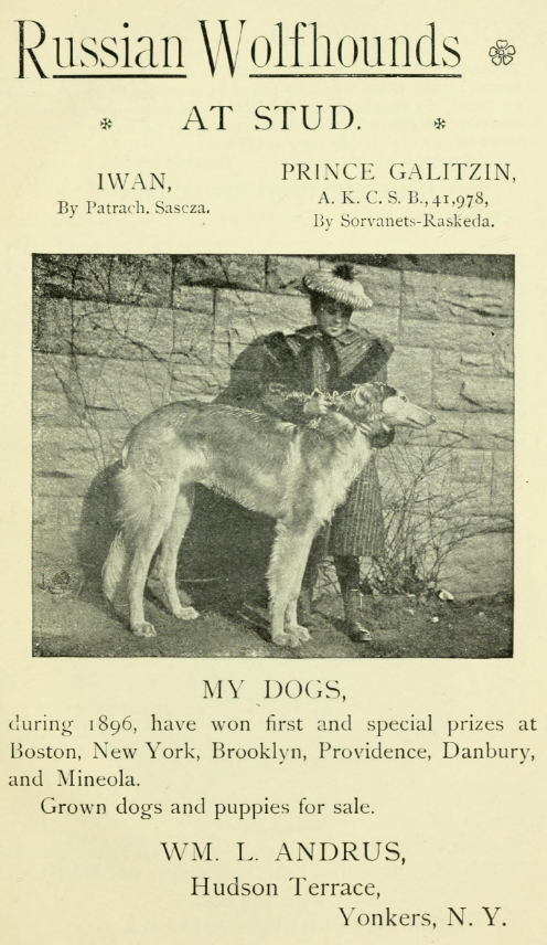 The Gordon setter Ida Simmons as pictured in an ad in the back pages of the book: Huntington, H.W. (1897). My dog and I. New York, NY: Caxton PressNewspaper write-up about a local show where Ida Simmons won a first place. Source: Anon. (1892, March 27). The Prize Winners. St. Louis Post-Dispatch, p. 24. Retrieved from http://www.newspapers.comTurf, Field and Farm, November 24, 1899A Welsh terrier in the book: Huntington, H.W. (1901). The show dog. Providence, RI: Remington Printing CoSewell, A.J. (1907). The dog’s medical dictionary. London, England: George Routledge & Sons, LimitedDogdom, June 1911Dogdom, July 1911Dogdom, August 1911Dogdom, September 1911Haynes, W. (September 1915). Old faithful. House and Garden, pp. 15-17The Dog Fancier, June 1921The Dog Fancier, July 1921A female parti-colored cocker pictured in The Dog Fancier, July 1921An ad in the back pages of the book: Huntington, H.W. (1897). My dog and I. New York, NY: Caxton PressAn ad in the back pages of the book: Huntington, H.W. (1897). My dog and I. New York, NY: Caxton PressHouse and Garden, February 1918