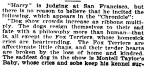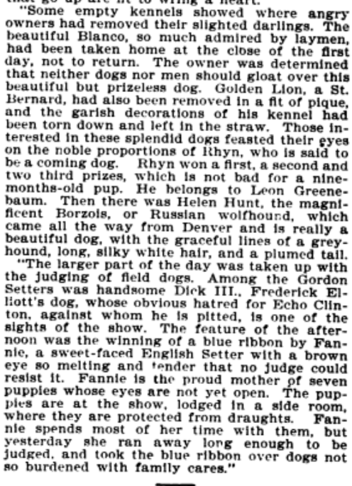 The article snippets and photos in this post are designed to give the reader a sense of the atmosphere and environment of the dog shows held around the turn of the century.
