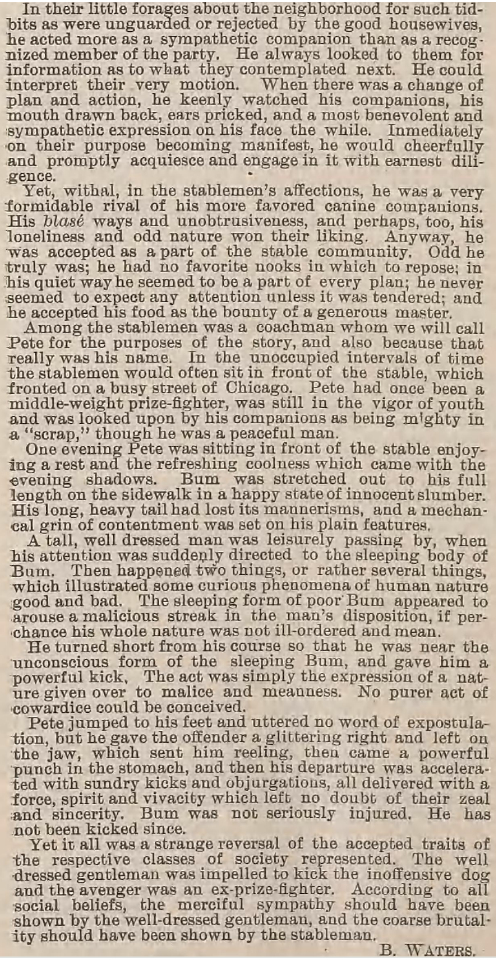 Dog Stories Three, Vol. V February 6, 2023July 17, 2025 ~ YesBiscuit Fair warning: the first one’s a lump in the throat-er. Source: Webb, H. (1872). Dogs: their points, whims, instincts, and peculiarities. London, England: Dean & Son From Forest and Stream, December 22, 1894 Dogdom, February 1912 Share this: Click to email a link to a friend (Opens in new window) Email Click to share on X (Opens in new window) X Click to share on Facebook (Opens in new window) Facebook Click to share on Tumblr (Opens in new window) Tumblr Click to share on Pinterest (Opens in new window) Pinterest Click to share on Reddit (Opens in new window) Reddit Click to print (Opens in new window) Print Click to share on LinkedIn (Opens in new window) LinkedIn Click to share on Pocket (Opens in new window) Pocket Click to share on Telegram (Opens in new window) Telegram Click to share on WhatsApp (Opens in new window) WhatsApp Like Loading...