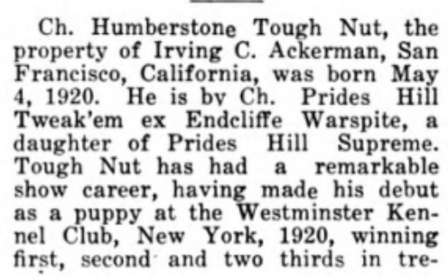Westminster Kennel Club winners for 1921