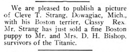 Wow, a bit of Boston Terrier history that I wasn’t aware of! I guess it’s not surprising as Bostons were the top registered dogs for decades, peaking in the 30s. I’m surprised that any dogs survived: https://www.akc.org/expert-advice/news/remembering-dogs-titanic/