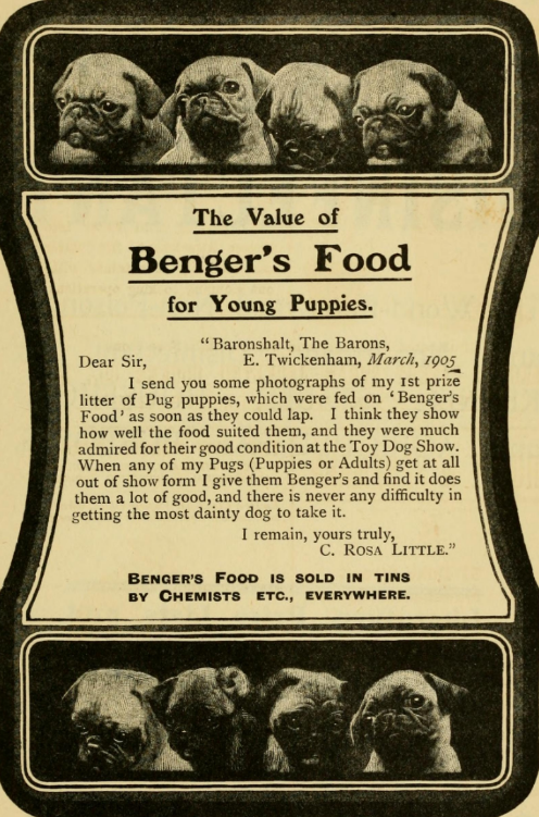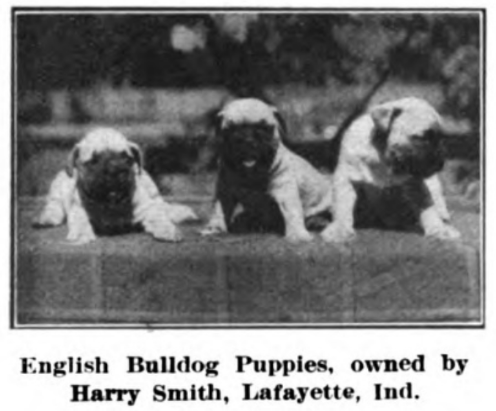 Shields, G.O. (1891). The American book of the dog. Chicago, Illinois: Rand, McNally & CompanyBulldog puppies featured in an ad for King Kennels of Providence, RI. Source: Huntington, H.W. (1901). The show dog. Providence, RI: Remington Printing CoLytton, J. (1911). Toy dogs and their ancestors. New York, New York: D. Appleton and CompanyLytton, J. (1911). Toy dogs and their ancestors. New York, New York: D. Appleton and CompanyDogdom, October 1911Dogdom, January 1912Dogdom, July 1913Dogdom, August 1913Dogdom, September 1913Dogdom, November 1913Boston terriers in Dogdom, December 1913Hunter–Trader–Trapper, March 1923An ad in the book: Sewell, A.J. (1907). The dog’s medical dictionary. London, England: George Routledge & Sons, LimitedDogdom, December 1911House and Garden, February 1919
