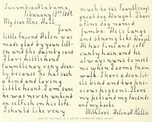 The following are excerpted from a lengthy piece on Helen Keller, written when she was still a child, appearing in a magazine for children.