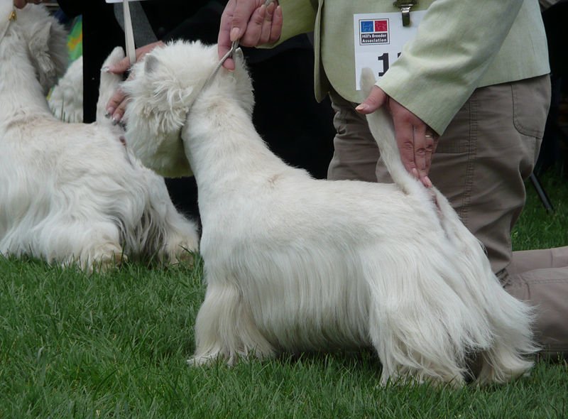 In the late nineteenth century, there was a lot of controversy over the grooming of terriers. For years, people had understood terriers to have the kind of coats needed for the particular tasks for which they were used. Then the show people started with “we just want to pluck a few stray hairs to give a tidy appearance” but many breeders realized once that door was cracked open, there would be no shutting it. They were right. We now have westies trimmed to have powder puff heads, completely stripped necks (offering no protection against bites), flowing feathering on the lower half and they’re leaving chalk footprints wherever they go. They’re less like dogs and more like collectibles.