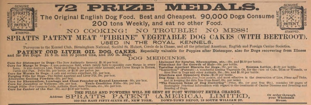 In this post, I’ve curated a collection of Spratt’s advertisements and articles from the late nineteenth and early twentieth centuries that I hope will convey a sense of the company and its liberal marketing strategy.