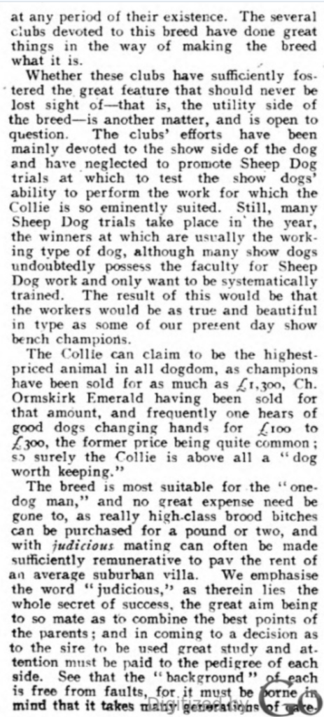 In January 1909, The Country-Side ran a series on the three varieties of Collie: the rough-coat, the smooth and the blue merle. Below are each of those articles in full.