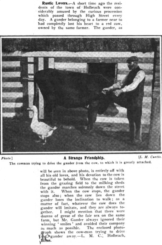 From Country Life, March 15, 1902This duo is shown off to the side of the kennel yards. The borzoi and deerhounds who lived at this kennel enjoyed the company of rats and happily shared their food with them so these two dogs were kept for the purpose of rat killing. Source: Anon. (1902, April 12). Famous kennels: Mr. R. Hood Wright’s. Country Life, pp. 470-472I too have a passion for petits beurres biscuits so these two are all right by me. From Country Life, June 28, 1902Dogue de Bordeaux and tabby in Animal life and the world of nature: a magazine of natural history throughout the world, Volume I, July 1902 – June 1903Country Life, January 10, 1903A prize winning photo by J. T. Roberts of a mouse and a pigeon who were friends, published in The Country-Side, November 16, 1907The Country-Side, October 3, 1908The Country-Side, March 6, 1909The Country-Side, July 3, 1909Half of this duo got shafted in the caption. The Country-Side, September 4, 1909