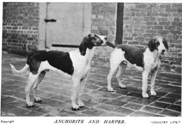 Taken from an article about elk hunting in Norway, these dogs are described as curly-tailed Norske collies. Country Life, February 21, 1903Terriers at work, pictured in Country Life, April 25, 1903Source: Teasdale-Buckell, G. T. (1903, May 9). The spring field trials. Country Life, pp. 613-615Two photos of hounds on an otter hunt from CountryLife, June 27, 1903.Country Life, August 22, 1903Anon. (1903, November 14). The Fitzwilliam hounds. Country Life, pp. 673-676Anon. (1903, November 28). A famous kennel. Country Life, pp. 748-750Country Life, November 28, 1903A dramatic foxhound shot in Country Life, November 28, 1903Three photos of Irish setters on a hunt from the November 1938 issue of Country Life and the Sportsman
